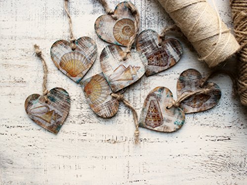 Set of 100 Nautical hearts with images of sea shells and painted sea water drops on each side seem to be a great Valentines day decor, Valentine gift, wedding favors for beach wedding favors or boho wedding favors or decor gifts for bridal shower. They are really plain ones but I love them. The images will be repeating in equal quantities for each one. ‘ There are default sets from 5 to 200 hearts, please, choose your quantity on the right side bar. You can also request any custom quantity you need. Hearts are wooden, handpainted using acrylic colors, decoupaged on both sides, varnished. Each heart has got a rustic twine for hanging. Set comes in a brown cardboard box for the whole set and craft paper bags for each heart. Hearts are made in the same style but each one is slightly different due to handcrafting. The size of each heart is about 3 inches long and wide (7 cm). Your set will be made to order within 1-2 weeks depending on quantity. If you are interested in wholesale order feel free to request our linesheet! CARE: no washing or pouring water on it. Can be wiped and then dried. Please, keep in a dry place with low humidity. Price is for a set of 100 hearts. Delivery to USA usually takes about 10-14 days + 7-10 days for making.